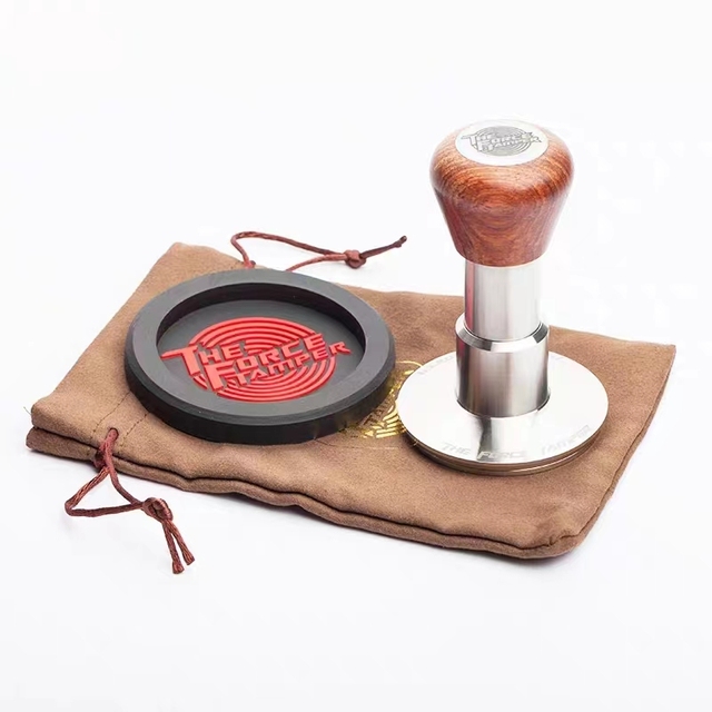 The force tamper with metal/wooden handle flat base 58.5mm Hand Press Coffee powder hammer Tools