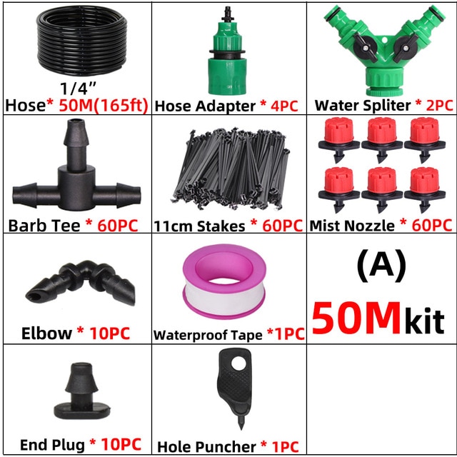 50M Smart Garden Watering System 4/7mm Hose Adjustable Dropper Kit Self Automatic/Wifi Compatibl Timer Micro Drip Irrigation Set – AX50M