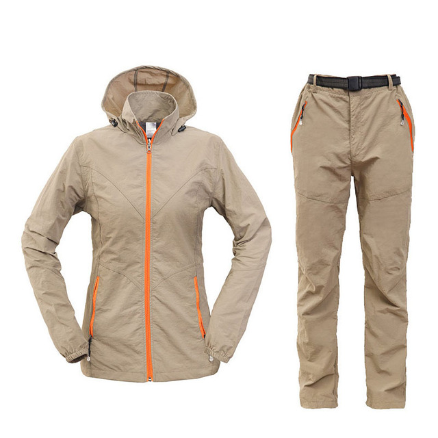 Camping Hiking Clothing Set Outdoor Sport Men Women Summer Sportswear Suit Hooded Jackets Pants Quick Dry Breathable Set ST01 – Women Khai, L