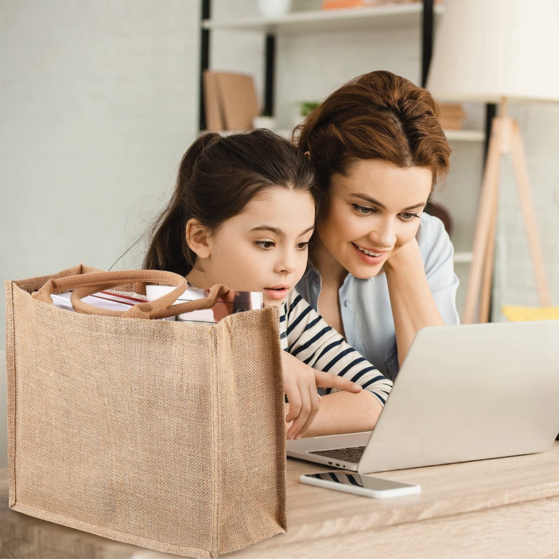 5 Pack Burlap Tote Bag Set Jute Tote Bags With Handles Blank Large Burlap Reusable Grocery Bags For Bridesmaid