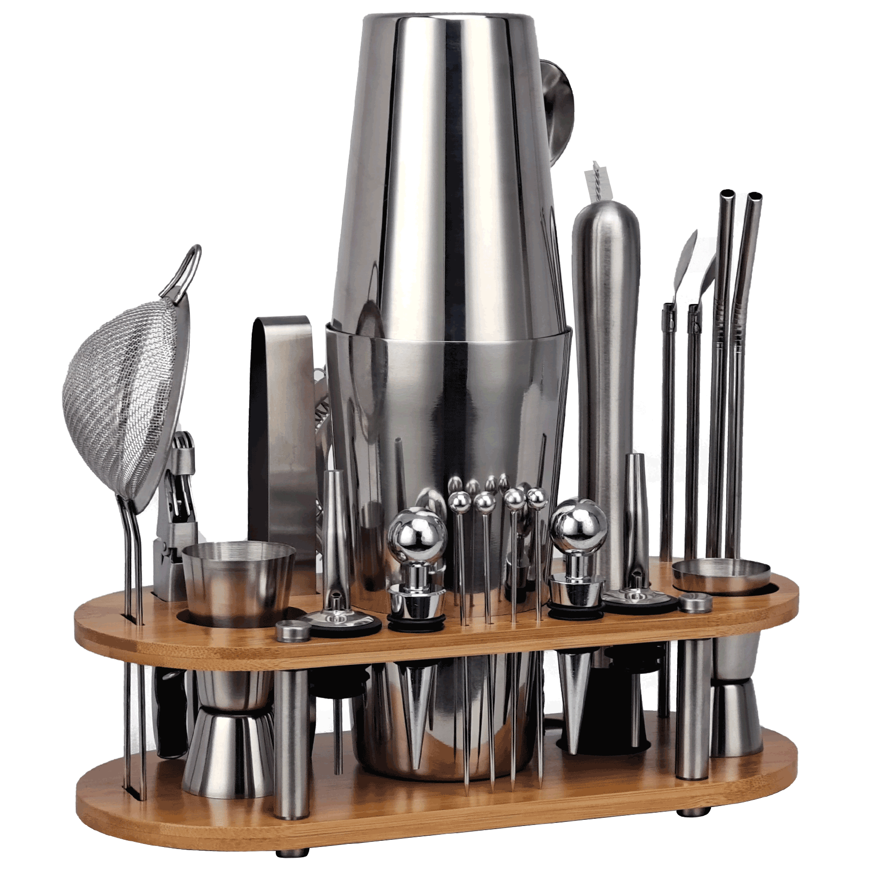 23-Piece Cocktail Shaker Set,Bartender Kit With Oval Bamboo Stand Detachable, Home Bar Tools Stainless Steel ,Perfect Gift