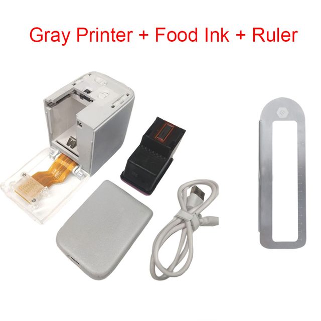Mini Handheld Mbrush Food Printer Portable Inkjet Pen Print Custom DIY Coffee Printing Food Printer with Edible Food Ink – Gray add Ruler