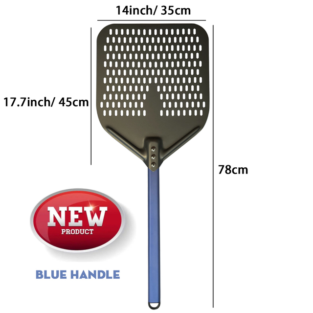 SHANGPEIXUAN 16/14/13/12 Inch Perforated Pizza Peel Rectangular Pizza Shovel Aluminum Hard Coating Pizza Peel Paddle Short Tool – Blue Handle 14inch