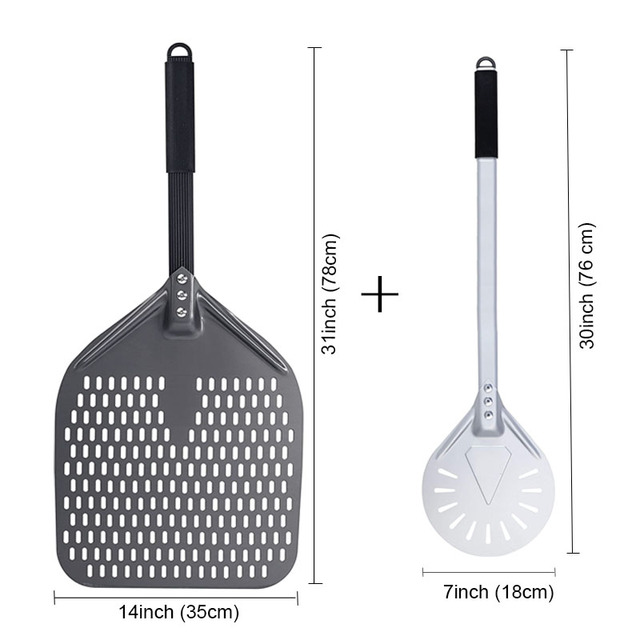 SHANGPEIXUAN 16/14/13/12 Inch Perforated Pizza Peel Rectangular Pizza Shovel Aluminum Hard Coating Pizza Peel Paddle Short Tool – 14inch and 7inch Set