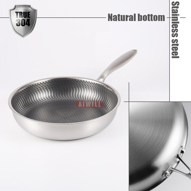 AIWILL Kitchen Quality 316 /304 Stainless Steel Frying Pan Nonstick Pan Cooking Fried Steak Pot Electromagnetic Furnace General