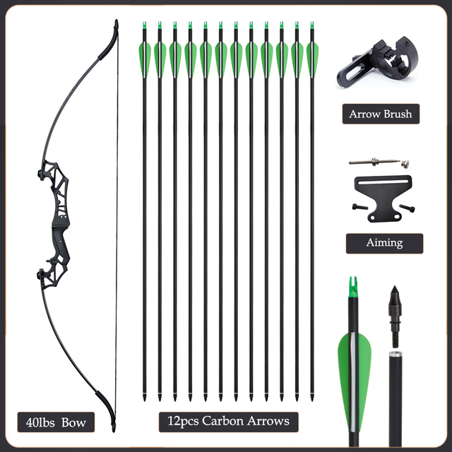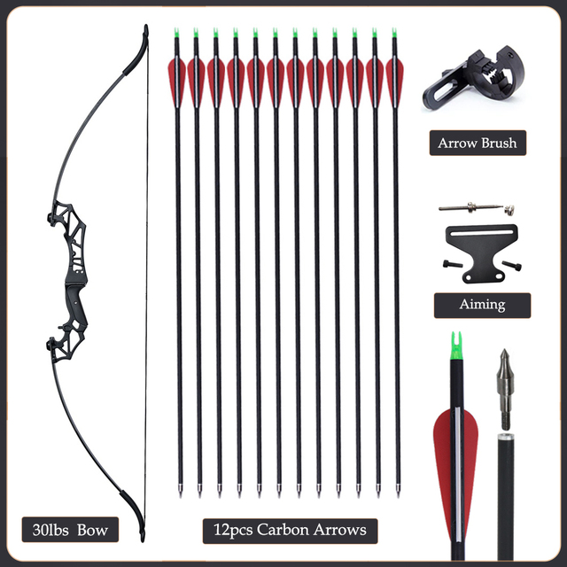 20/30/40/50lbs Archery Bow Recurve Take Down Straight Bow 12pcs Mixed Carbon Arrows Quiver Outdoor Sport Shooting Practice Bow