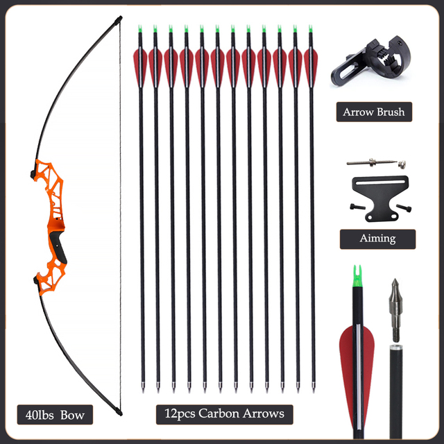 20/30/40/50lbs Archery Bow Recurve Take Down Straight Bow 12pcs Mixed Carbon Arrows Quiver Outdoor Sport Shooting Practice Bow