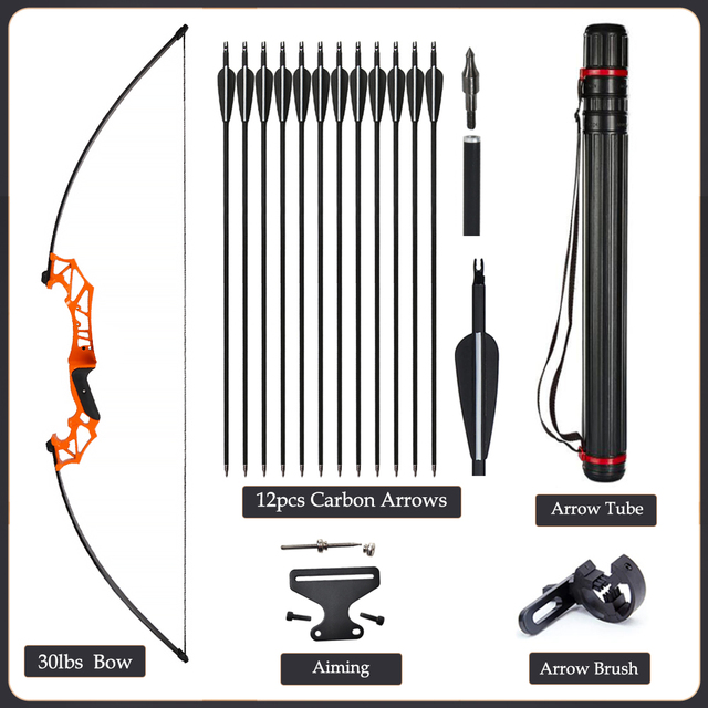 20/30/40/50lbs Archery Bow Recurve Take Down Straight Bow 12pcs Mixed Carbon Arrows Quiver Outdoor Sport Shooting Practice Bow