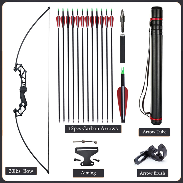 20/30/40/50lbs Archery Bow Recurve Take Down Straight Bow 12pcs Mixed Carbon Arrows Quiver Outdoor Sport Shooting Practice Bow