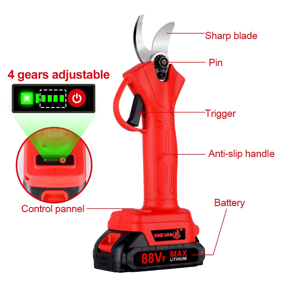 1000W Brushless Electric Cordless Pruner Pruning Shear Handheld 4 Gears Branches Cutter Landscaping Tool For Makita 18v Battery